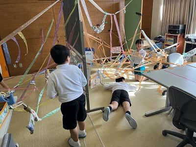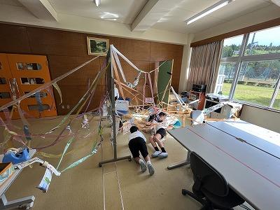 最後は1・2年生がスズランテープや新聞紙を組み合わせてつくった