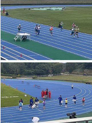 ③学校対抗リレーでは、3校合同チームの代表として6年生の5人が出場