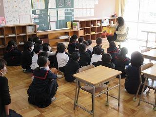 1~4年生は、朝学習の時間に、読み聞かせをしていただきました。絵本を2つ読んでいただきました。