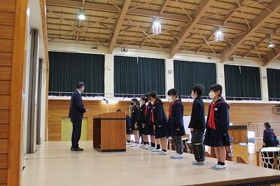 卒業式の練習後は、自学ノートを頑張っている人の表彰を行いました。