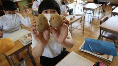 理科の授業で植物の体の働きを調べるため、ジャガイモの観察(だんしゃくいも&メイクイーン)をしていました。特徴をとらえて絵をかいたり、気づいたことを記入していました。