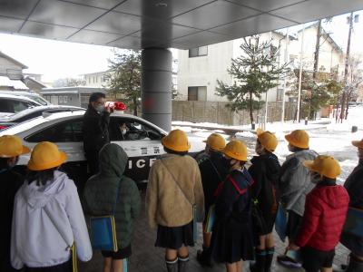 津幡警察署ではパトカーに乗せて頂いたり、3年生の学習発表会を警察の方に聞いて頂いたり、