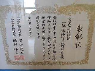 第63回よい歯の学校運動 石川県大会において、萩野台小学校は、小規模校の部で石川県1位となりました。