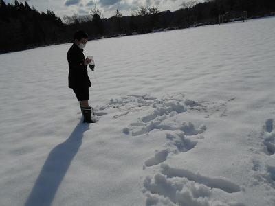 ペットボトルに好きな色の絵の具と水を入れて、できた色水で雪の上にお絵かきです。