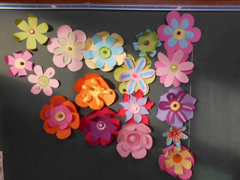 2・3年生は、図工の時間に、お花の飾りを作りました。工夫して、1つ1つ違う素敵なお花ができました。どこに飾るかは…お楽しみです!