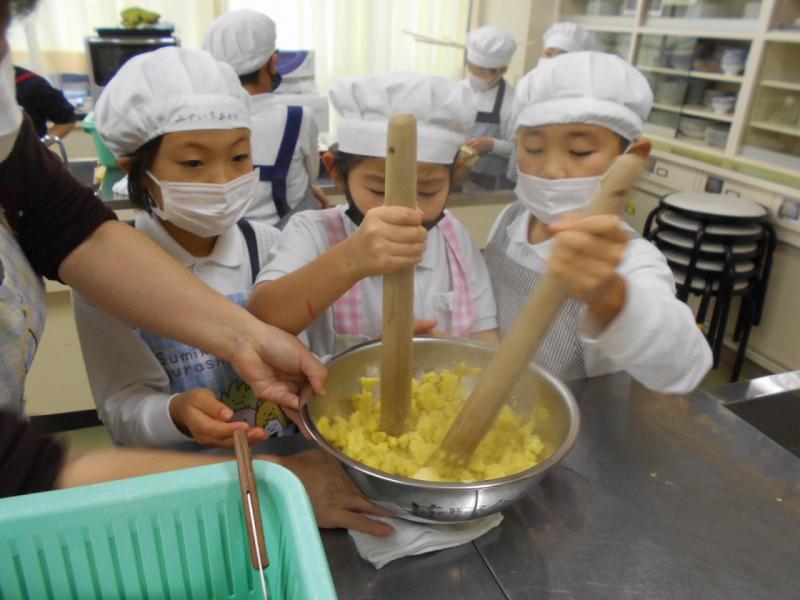 1~3年生とかがやき学級さんで、畑で育てたおまん小豆とさつまいもで、おしることスイートポテトを作りました。1・2・かがやきさんは、スイートポテト担当、おしるこは3年生の担当です。どちらも、心も身体もぽかぽかあったまるスイーツになりました!