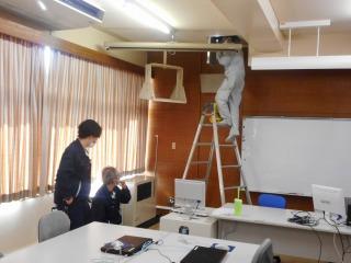 午後2時ごろ、業者の方が、各教室から無線で光通信を利用できるようにするため、校内のネットワーク環境を調べにきました。