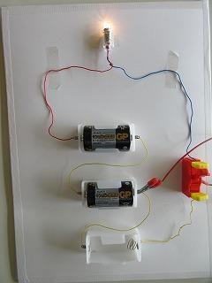 今まで、乾電池2個で、「直列つなぎ」と「並列つなぎ」を比べました。