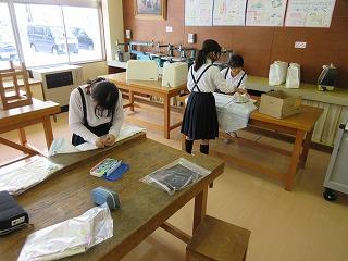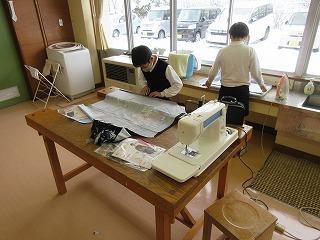 今日は、布をミシンで縫います。はじめに、アイロンで3つおりにして、まち針で留めて、ミシンで縫います。まっすぐ縫えるように慎重に縫っていました。
