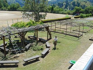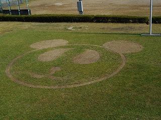 校務員さんが、みんなを楽しませるために、芝を刈ってくれました。