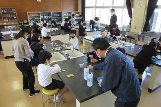 今日の3~4限に、津幡町こども科学館の館長さんをお招きして、科学教室を行いました。