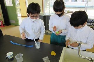 1~4年生が参加して、スライムとスーパーボールを作りました。