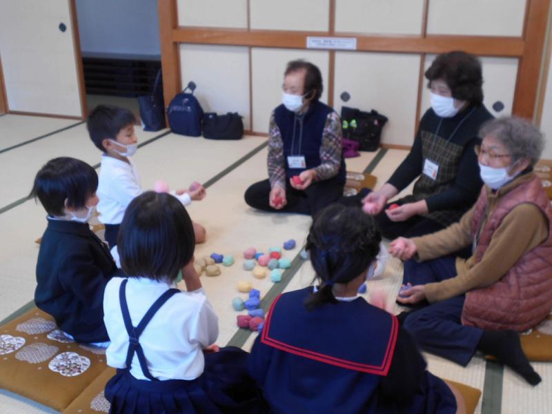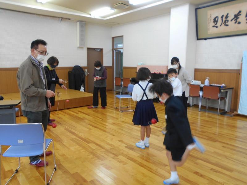 1・2年生は、地域のおじいちゃん・おばあちゃん方に昔遊びを教えていただきました。