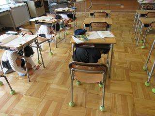 2限目に避難訓練をしました。地震が起き、その後火事になるという想定です。今年度最初の避難訓練でしたが、「おさない・走らない・静かに・もどらない」などを守って行動することができました。次回は2分以内に運動場へ避難できるようになることをめあてとしました。