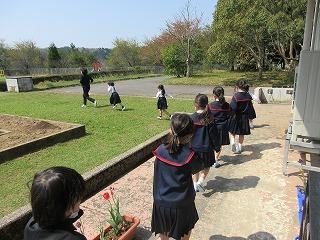 ①今日も昨日に引き続きとてもいい天気でした。子どもたちも気持ちよさそうに外へ出て遊んでいました。