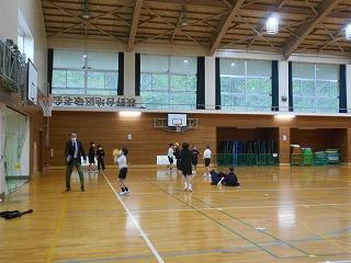 運動公園の体育館に到着したら、班ごとに集まって自己紹介。