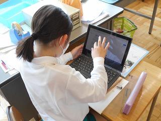 ①健康委員会が長休みにスッキリ調査を集計しました。クロムブックでチェックをしているので、集計もクロムブックを見ながらしています。