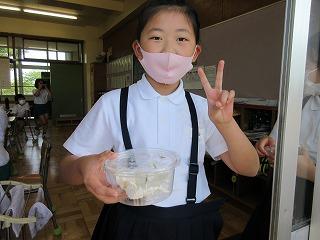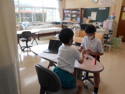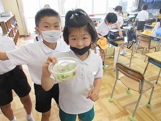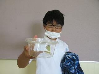 3年生は、理科でモンシロチョウを育てています。3年生は10人いますが、そのうちの一人が世話をしているモンシロチョウが羽化しました。今日は、2人目です。さなぎから出た後、液体も出てくるのに驚いていました。