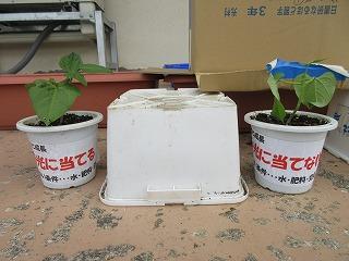 日光に当てた方は葉が8枚。 日光に当ててない方は葉が5枚で、 たおれている。 |