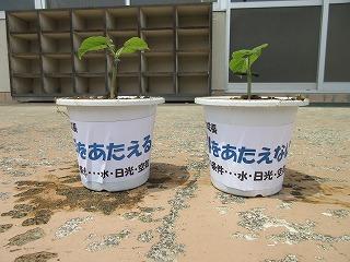 肥料をあたえた方は葉の色がこい。 肥料をあたえない方は葉の色がうすい。 |