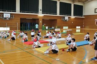 昼休みの後半に、器械運動交歓会に向けての発表会を行いました。4年生の皆さんは、体育の時間を中心にたくさん練習をしてきました。練習の成果を発表しました。少し緊張していましたが、一生懸命に演技をしていました。