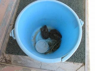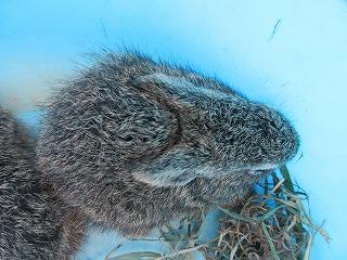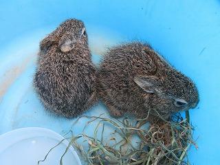 ヘチマが植えられている学校園に、2ひきの野生の子ウサギがいました。校務員さんが見つけました。どちらも体長12cmほどでした。