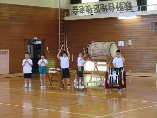 4限目に、第1回目の太鼓練習がありました。5・6年生が、3・4年生の前で披露しました。3・4年生は今年から初めて太鼓や笛の練習をし、運動会やお祭りで披露します。