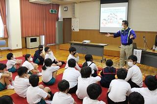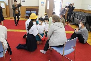 1・2年生と3~6年生に分かれて行いました。「災害とは何か」「災害の時にできることは何か」などについて、赤十字の防災リーダーの方から分かりやすくお話いただいた後、5・6年生は実際にお年寄りへの「声かけ訓練」を行いました。笑顔で声かけする姿が見られました。