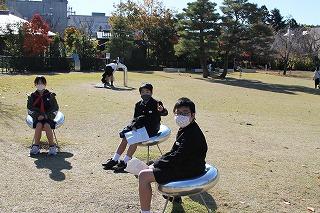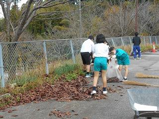 なかよし班にわかれて場所を分担し、どれだけ落ち葉を集められるか競いました。