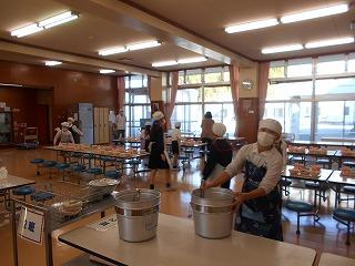 今日は3・6年生が給食当番でした。