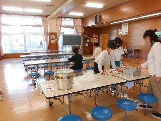 これまで、自信がなくて盛り付けを6年生にお任せしまいがちな3年生も「ごはん、僕します!」と積極的に盛り付けをしていて、成長を感じました。