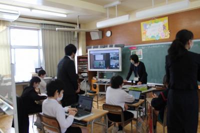 機材の準備や画面の操作などで時間がかかったり、お互いの声が聞き取りにくいことがあったりといくつか課題はありましたが、子どもたちはいつもと違うメンバーでの学習を楽しんでいたようでした。