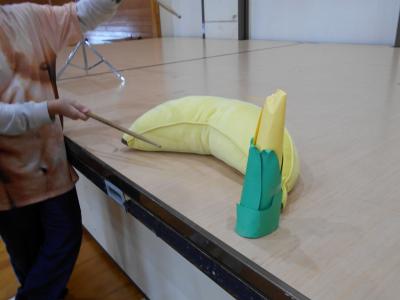 巨大バナナと、とうもろこしと、バチと、筋肉Tシャツ…?