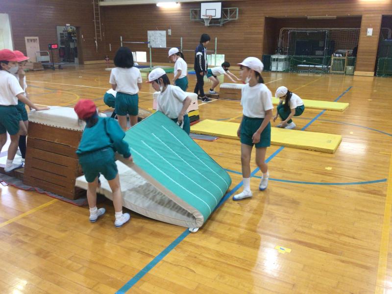 マットや跳び箱の準備では、友達と声を掛け合ってテキパキと準備をしていました!