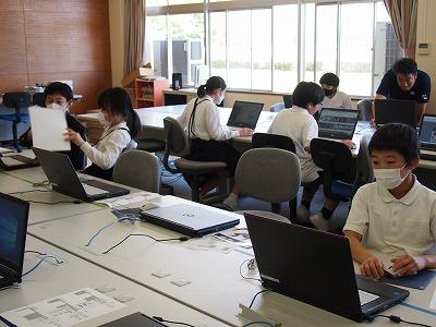 パソコン室で先生のお話をしっかり聞いたり、友達同士で助け合ったりして、お気に入りのデザインの下敷きを作成していました。