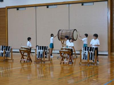 来月の音楽会に向けて、5限に3~6年生は太鼓練習をしました。