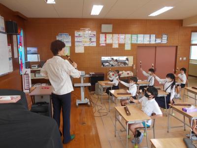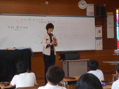 2時間目の音楽の時間に3、4年生のリコーダー講習会を行いました。