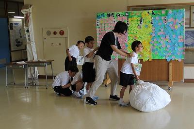 2人目の6年生はシートの真ん中までたどり着き、えいやっ!