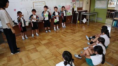 国語でお話の内容を捉え、登場人物の気持ちを考える学習を行ってきた1年生のみなさん。