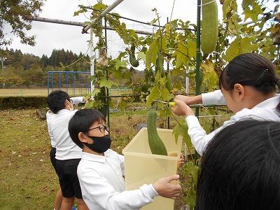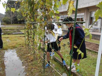 11/7(火)4年生のヘチマ収穫