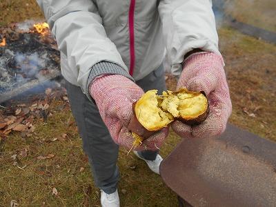 そして、雨のやみ間に、校長先生が火を準備して、焼き芋開始!