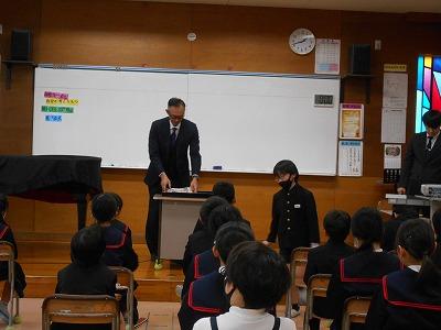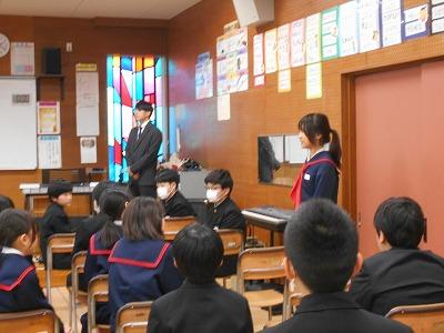 5年生は、6年生に関係する先生方で異動された先生方からのメッセージを紹介してくれました。