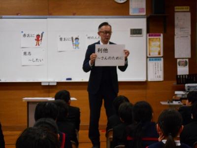 その後、校長先生から節分にちなんで「ないたあかおに」のお話をふまえたお話がありました。