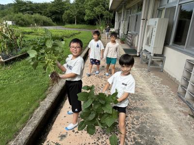 2年生の生活科の学習で育てた、枝豆の収穫を行いました。