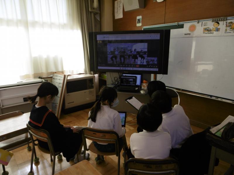 4年生が外国語活動「What do you want?」で、金沢市内川小の4年生6名とオンライン交流をしました。