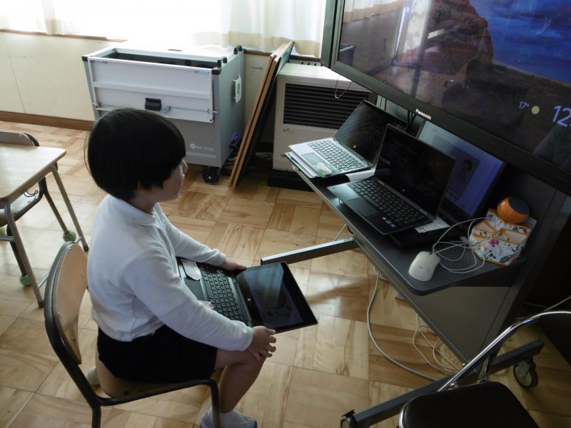 タブレットを使って音声を確かめてから発話したり、友達と直接会話をしたり、いろいろな方法で、意欲的に学習に取り組んでいました。