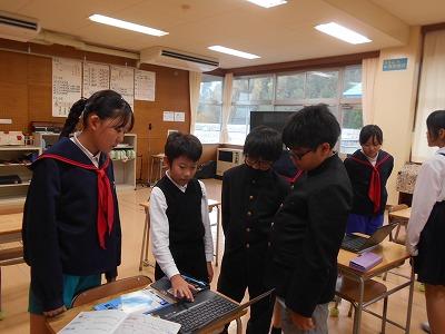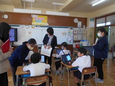5時間目は4年生の外国語の授業に他の学校から先生方が見にいらっしゃいました。