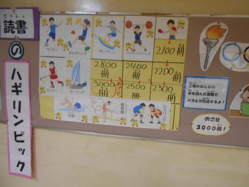 昨年度学校全体で3000冊を読んだことをもとに、今年度も3000冊を超えようと取り組んでいます。パズルが完成していく様子を楽しみにしている萩野っ子の様子がみられます。