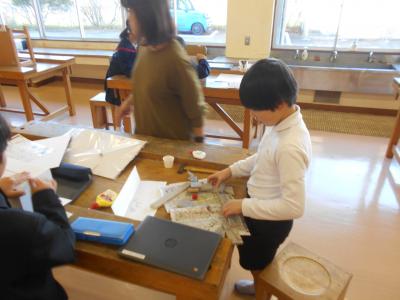 3年生は「顔を出したらなんだかワクワク」4年生は「おもしろダンボールボックス」の制作をしていました。
