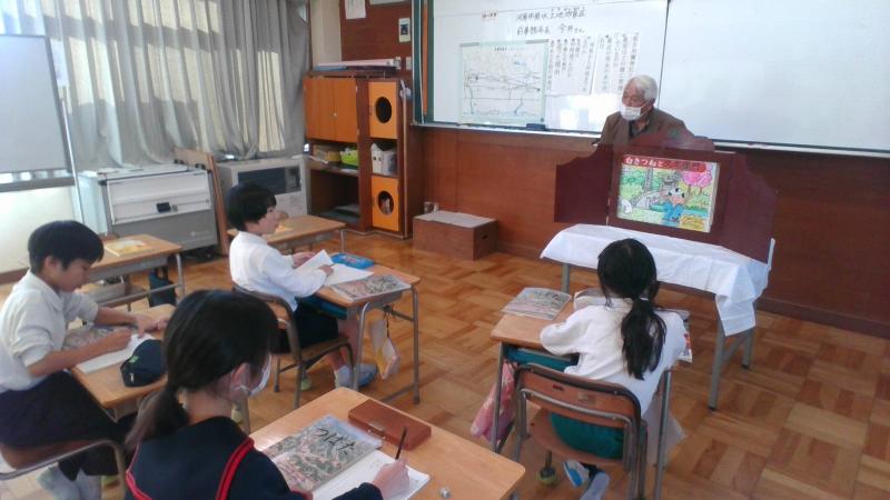 4年生は社会科「地域の発展に尽くした人々」の学習で、河原市用水を作った中橋久左衛門さんについて調べています。